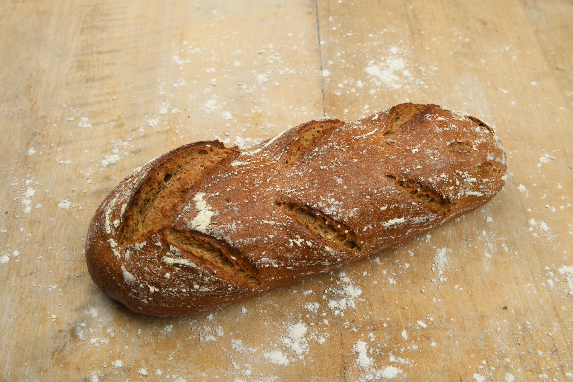 Inhaltsstoffe: Roggenmehl, Weizenmehl, Wasser, Natursauerteig (Wasser, Roggenmehl), Natursteinsalz, Backhefe, geröstetes Roggenmehl, Weizenkleber, Rapslecithin, Brotgewürz (Anis, Fenchel, Koriander, Kümmel);