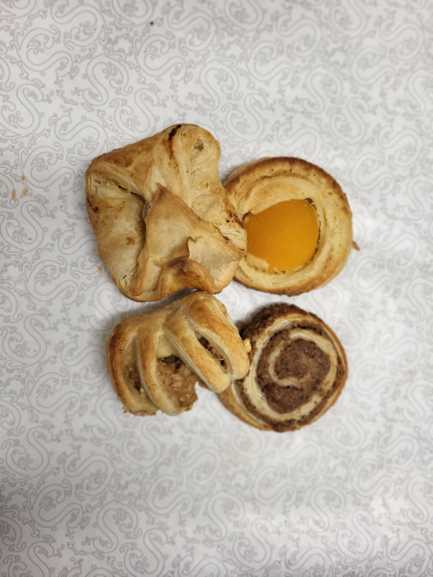 Inhaltsstoffe: Weizenmehl, Salz, Vanillezucker, Eier, Hefe, Zucker, Butter, Ziehfett, Wasser,