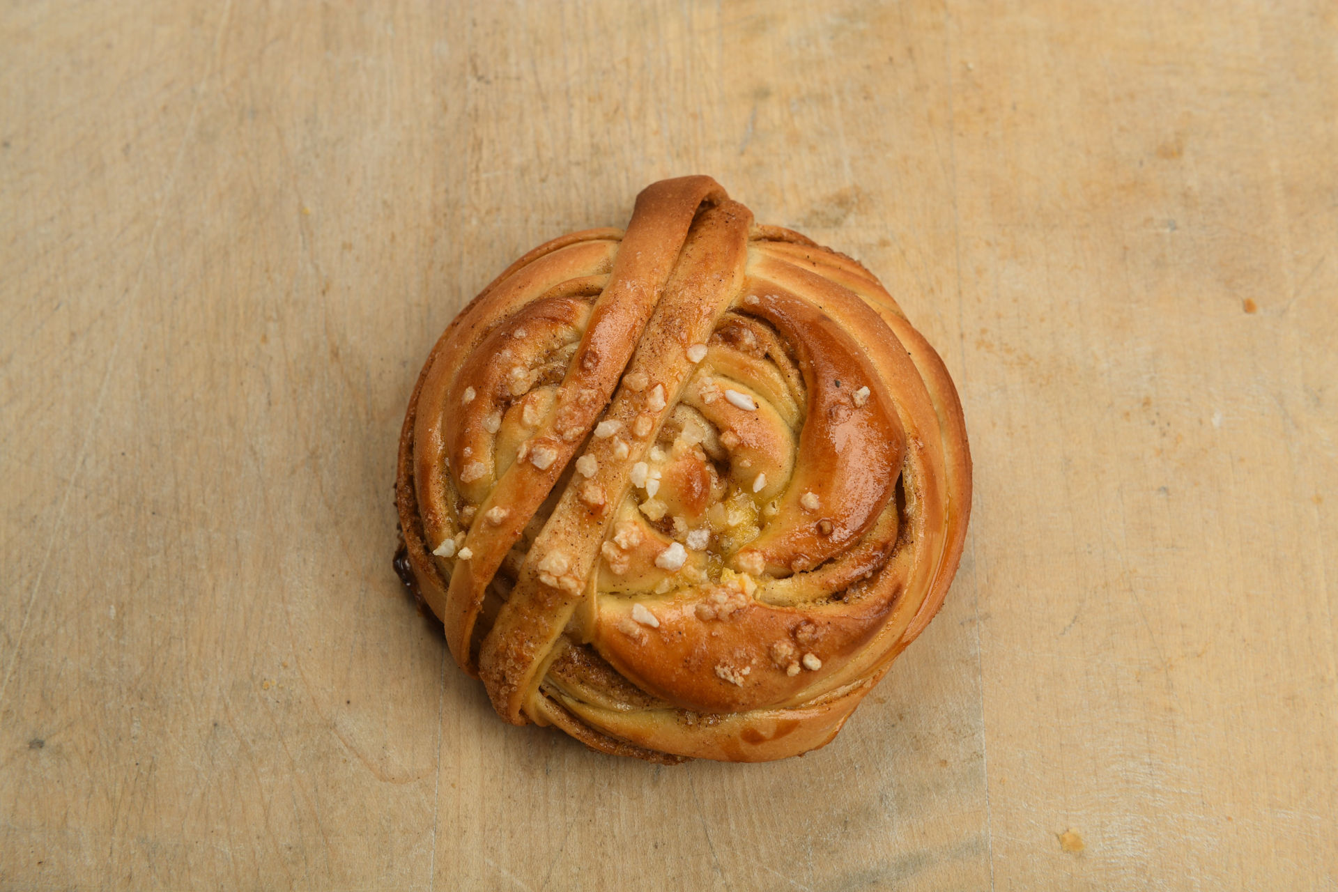 Inhaltsstoffe: Weizenmehl,Milch,brauner Zucker,Butter, Hefe,Salz,Kardamom,Zimt,Eier,Hagelzucker ;